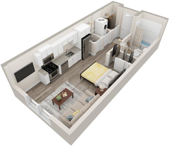 Mammoth Springs at The Corners is bringing luxury studios to Sussex! This spacious studio floor plan offers 428 sq. ft of living space with a washer and dryer included in the apartment and a kitchen complete with all of the necessary stainless steel appliances and granite counter tops.